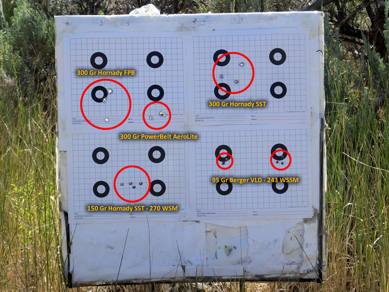 The 3 shot 100 yard groups I shot today with my CVA Accura V2, Browning X-Bolt in 270 WSM and my Model 1885 in 243 WSSM. I did shoot a 4th shot on the 150 SST group.