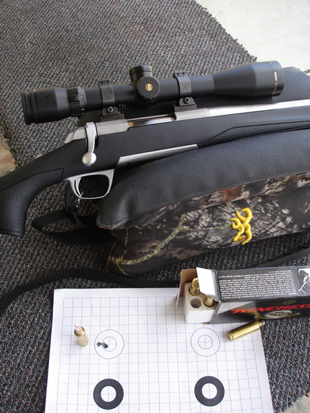 I have shot the X-Bolt a time or two and have just loved the accuracy. The factory trigger has just been amazing and as I have learned from my A-Bolts and Model 1885s, Miroku knows how to make a barrel. The X-Bolt magazine has a couple of features I really like also. It has shoulder stops that prevent the tips of the bullet from getting smashed into the front of the magazine when the gun recoils. The magazine also aligns the bullet straight with the bore unlike many others that stack bullets in an alternating fashion. The rifle is also very light. Just perfect for the backpacking hunts that I so enjoy taking. I kind of wish it had a 24 or 25-inch barrel. I will admit that I enjoy getting as much velocity as I can and barrel length will give or take away that velocity. However, I also understand that this rifle would weigh more because of the length. The barrel would also be less rigid unless the barrel contour were enhanced. Stiffer barrels make for less vibration which equals better accuracy. If the barrel were longer, like I would like then it would need a heavier contour to make up for the added vibration to get the same stiffness and accuracy.