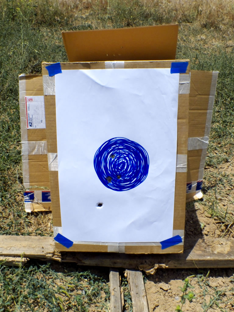 For fun and also just in case I ever had to take a shot at a wounded animal I placed the target out at 300 yards. It took me using my HS20exr camera to video the shots and then I would review the video on the lcd screen to see where I was hitting. After four or five shots I figured out the hold and placed two shots within a six-inch circle. If I had a variable power or just any magnification 300 yards probably could be a lot more possible. For now, I am only comfortable with this far of a shot if I had a wounded animal I needed to put down.