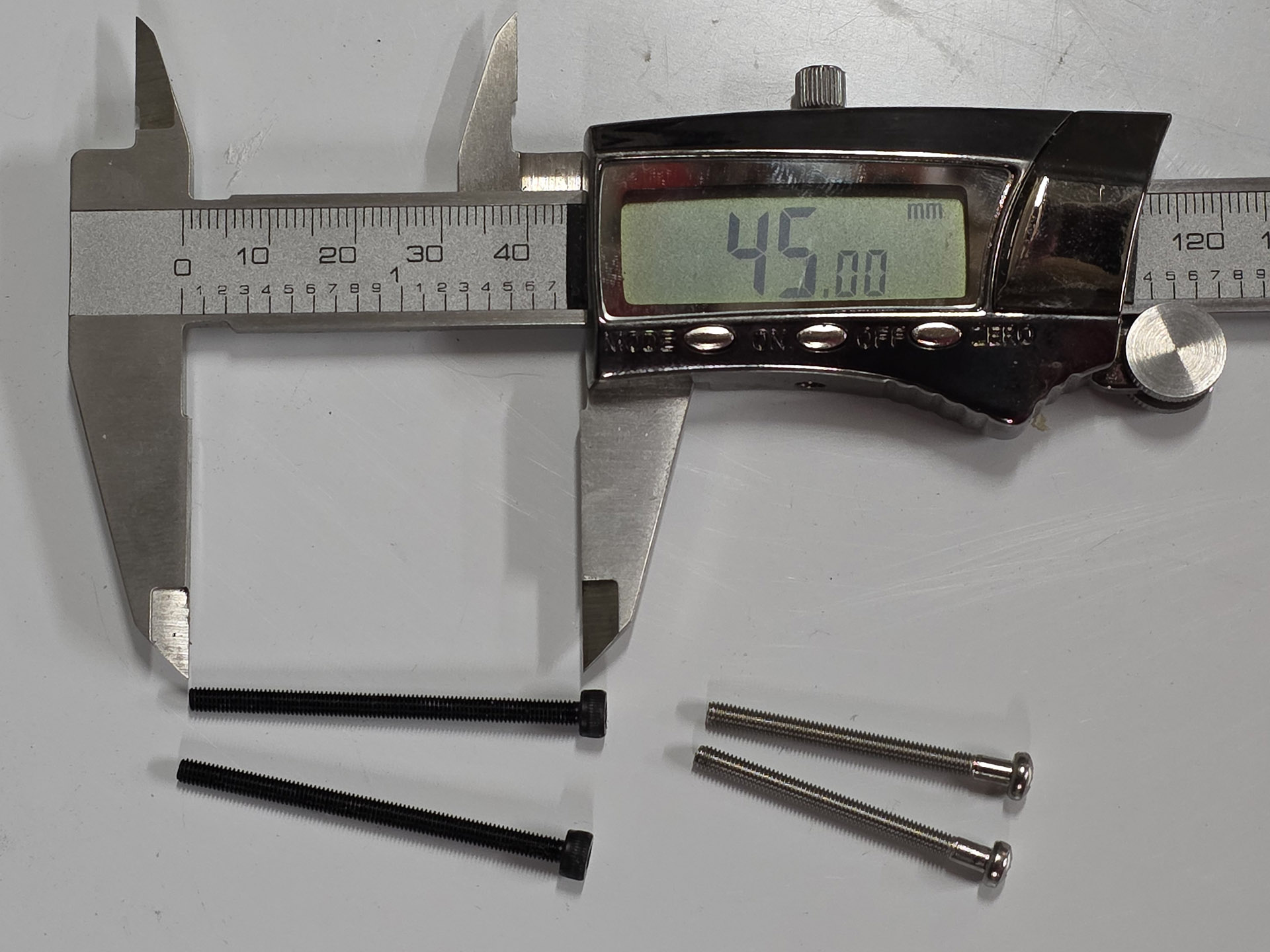 Shown here are the M3x45mm screws needed when using five internal spacers and the original M3x35mm screws.