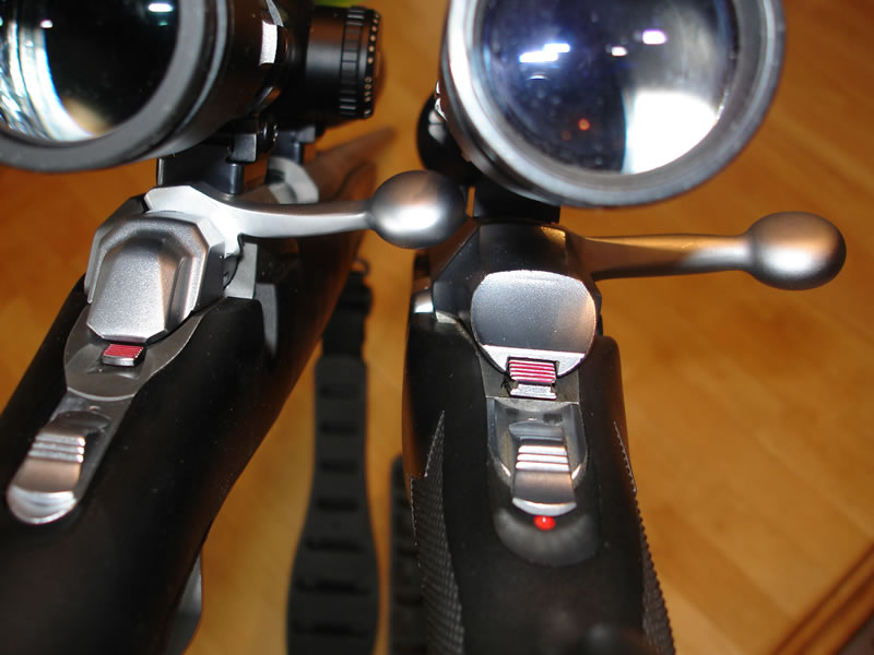A-Bolt (Top) X-Bolt (Bottom)The A-Bolt having a larger bolt release button.