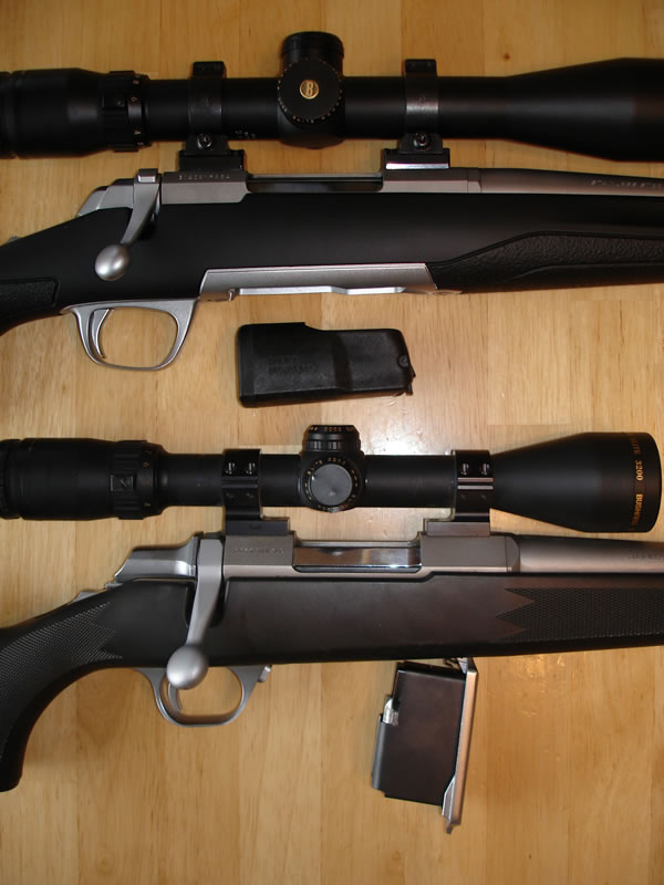X-Bolt (Top) with detachable rotary magazine.A-Bolt (Bottom) with hinged floorplate and detachable leaf spring magazine.