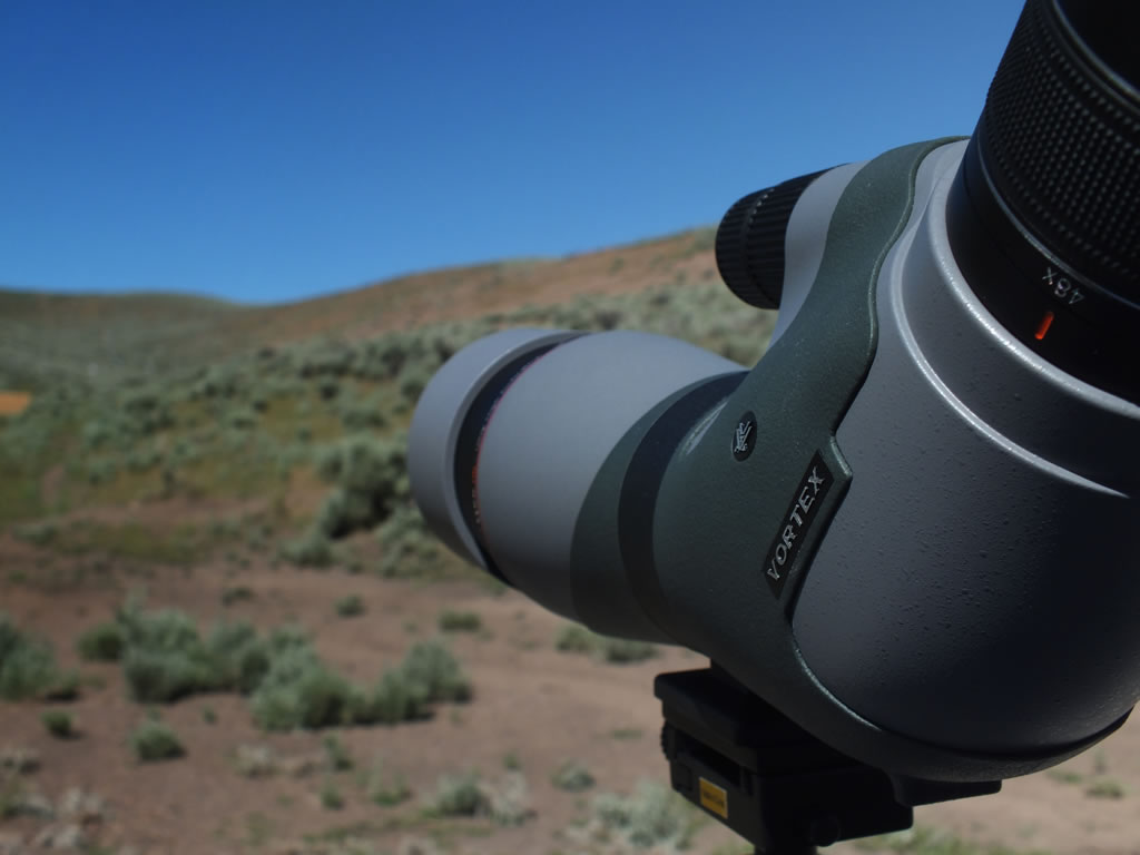 Using a Vortex Razor HD spotting scope to view where the hits were at.