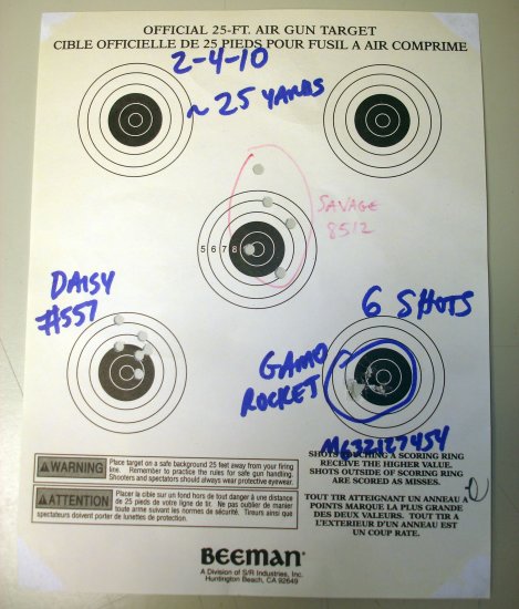As you can see from the targets, the Gamo Rocket .177 caliber pellet was the clear leader in accuracy from my Benjamin 397 pellet rifle. Again, the pellets I shot were only the pellets available at local sporting goods stores in my area. I'm thinking of ordering some Gamo Hunter pellets from Midwayusa.com and give them a try. I'm thinking these pellets might also shoot well.