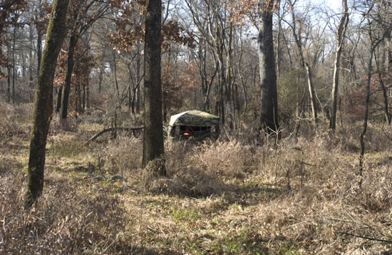 Dallen from inside the Primos Double Bull ground blind.