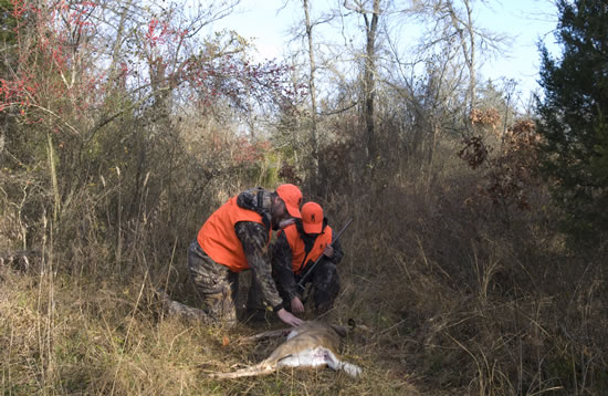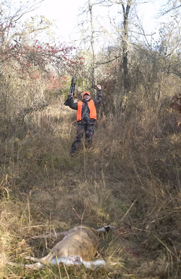 With the help of a tripod and the timer on the camera, Dallen and I inspect the entry wound on his first deer. Hmm, some of these photos look a lot like some on browning.com. ;)