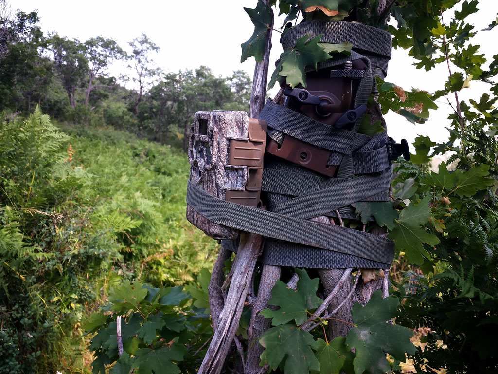 This is how I found my bear and elk attacking camera this time out with the strap covering the lens. The bears and elk have really raised havoc on this camera location moving it out of position and tearing it down, so a few weeks prior I moved the trail camera off the Tree Mount and ran an extra loop of the strap around the front of the camera. I did this to the camera to really secure it to the brush. It was secure but an elk bumped the camera and the strap slid up over the lens.