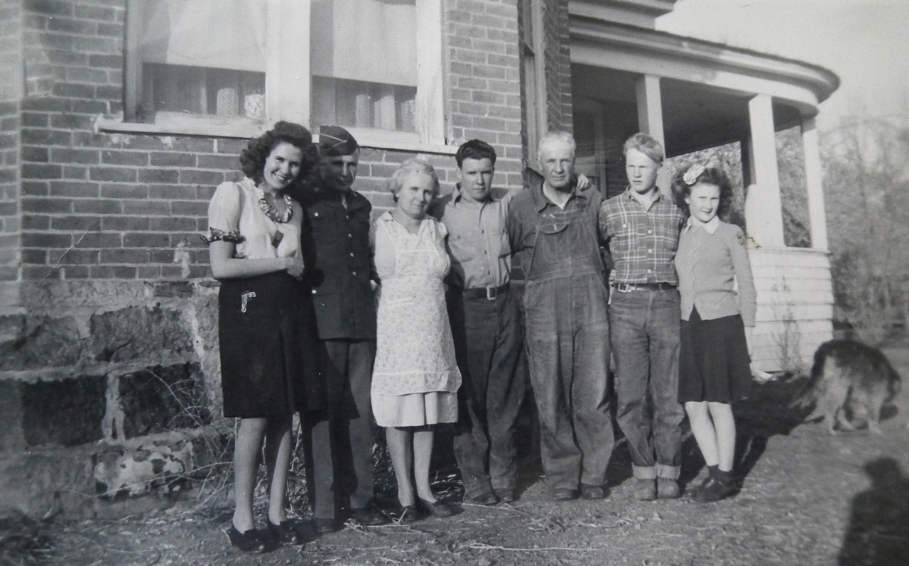 My Great Grandparents and their children, my Great Aunts and Uncles, in the yard at the bottom of Pine Canyon. Left to right: Helen, Verl (Grandpa), Inez, Dean, Arnold, Floyd (Uncle Whitey) and Vada. As I write this the only one currently living in this photo is my Great Aunt Vada.