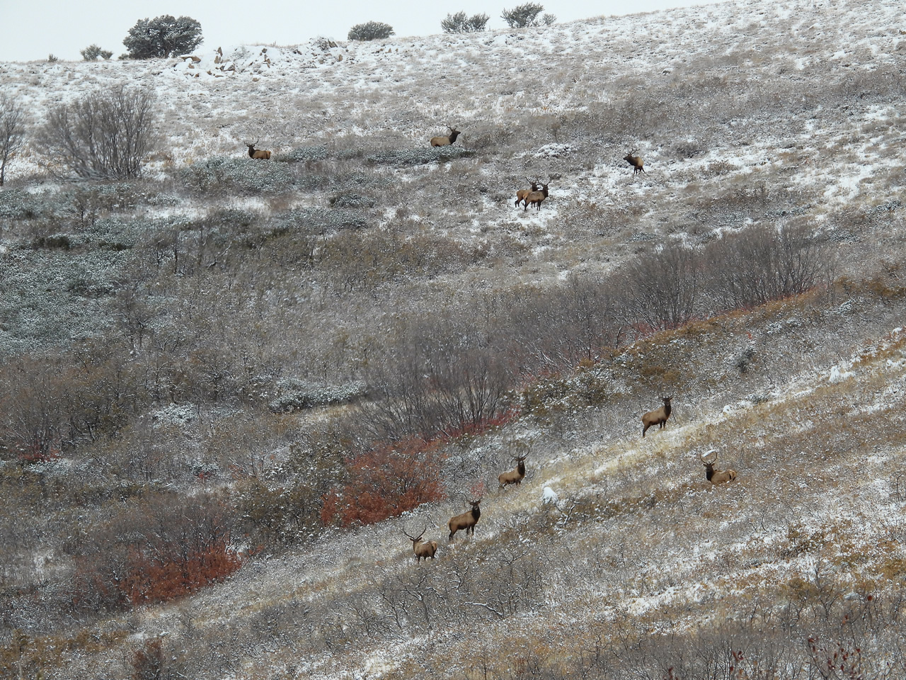 After the snow stopped we started crawling again. Have I mentioned how much I love my Rubicon? What an awesome hunting rig, keeping us warm and dry and climbing up through some steep terrain with the snow reaching around a foot deep in the shady steep areas.