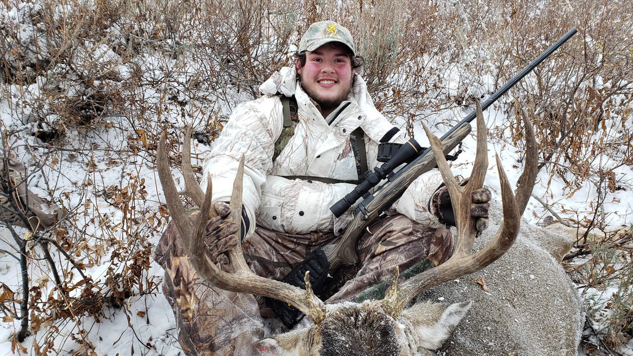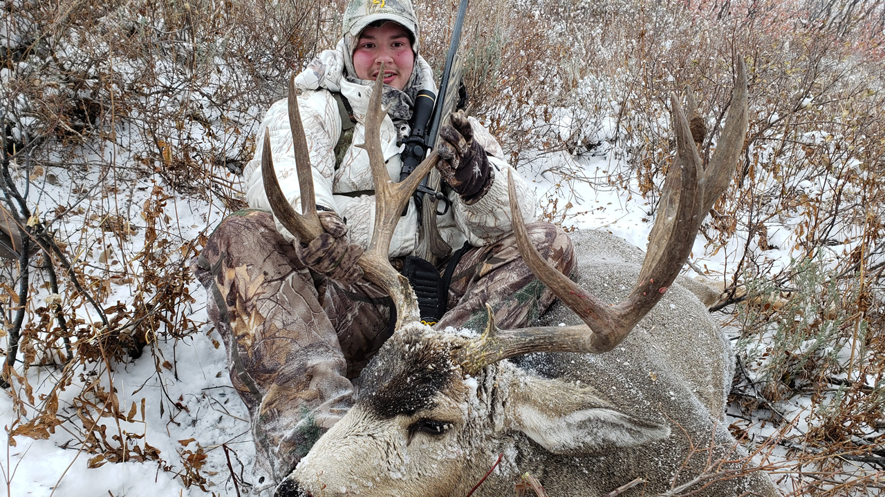 Big smiles from Dallen after getting his buck.