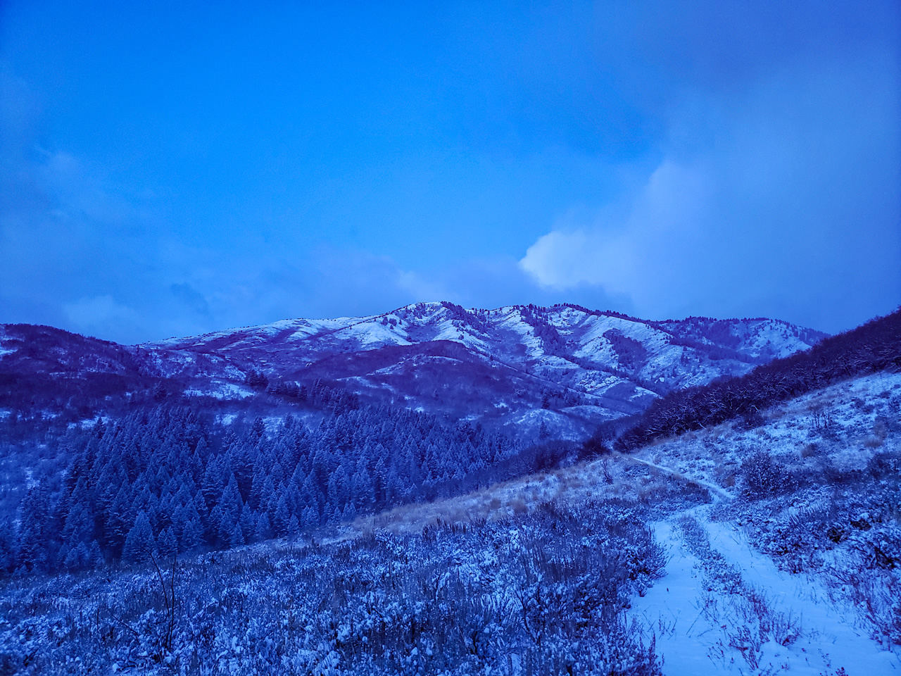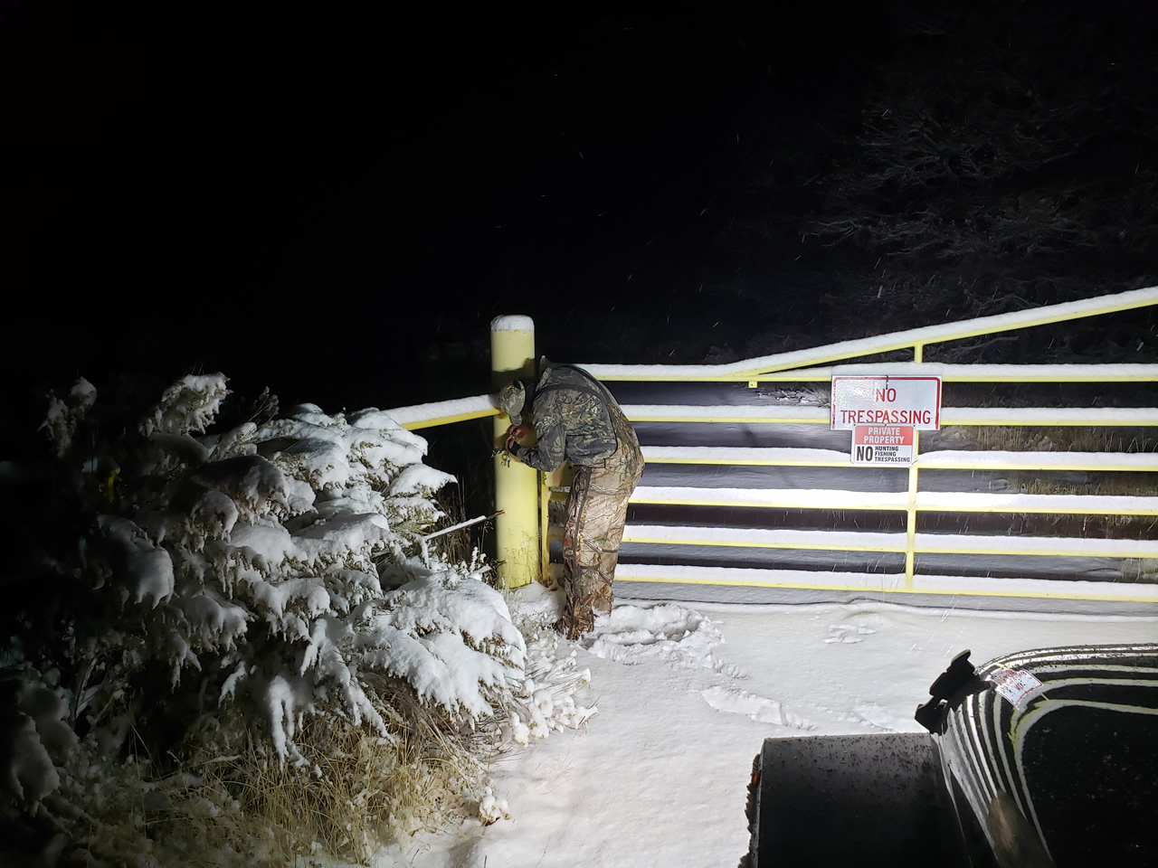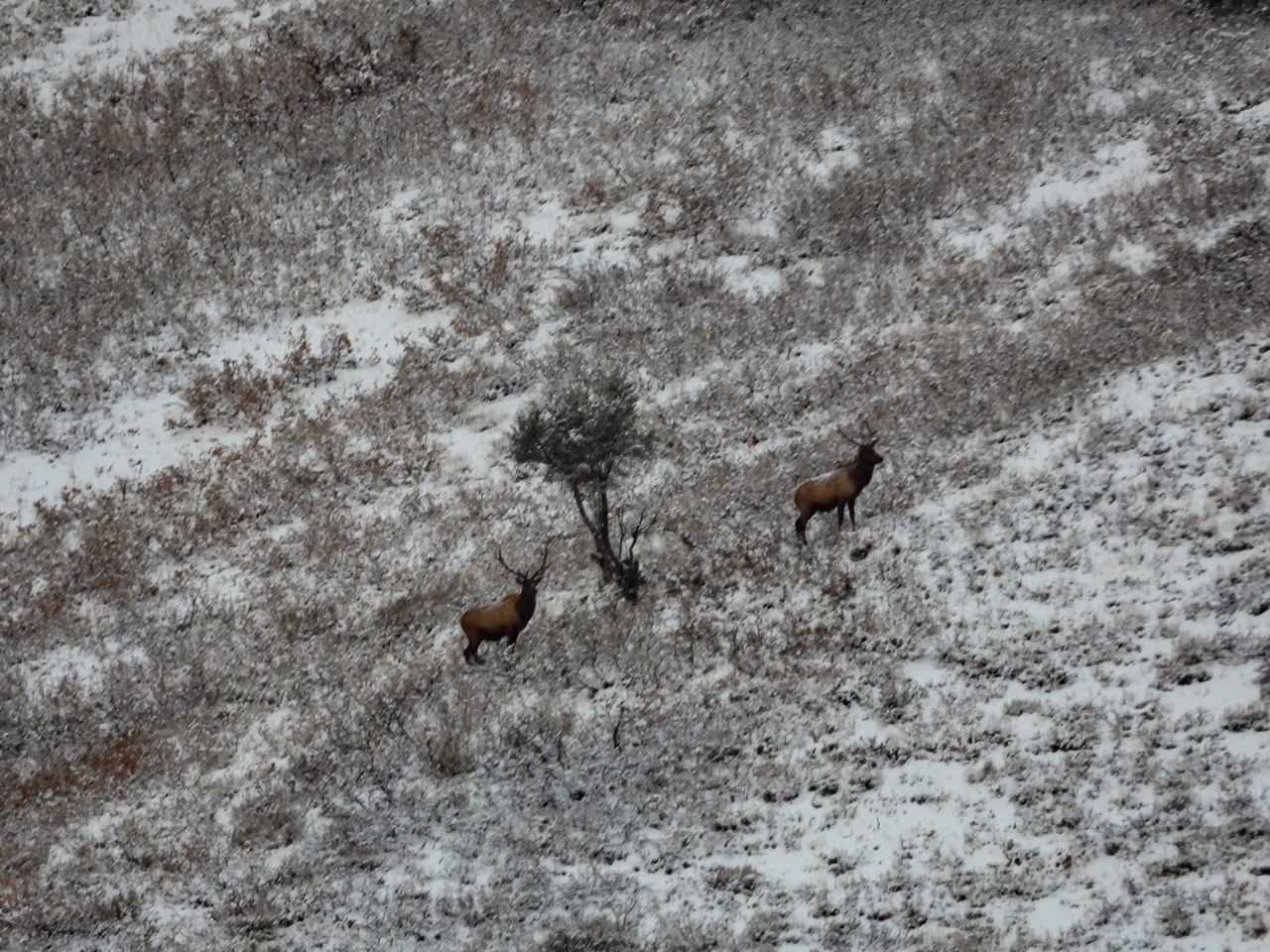 Interestingly, as we headed down the mountain toward the gate in North Morgan, we ran into fresh chained-up truck tracks in the snow that came in and out of the North Morgan gate that day. We were told we would have the mountain to ourselves, other than the other public hunter and all the hunters use the gate near Devils Slide, so it was probably workers going in to work on the cell tower or something.