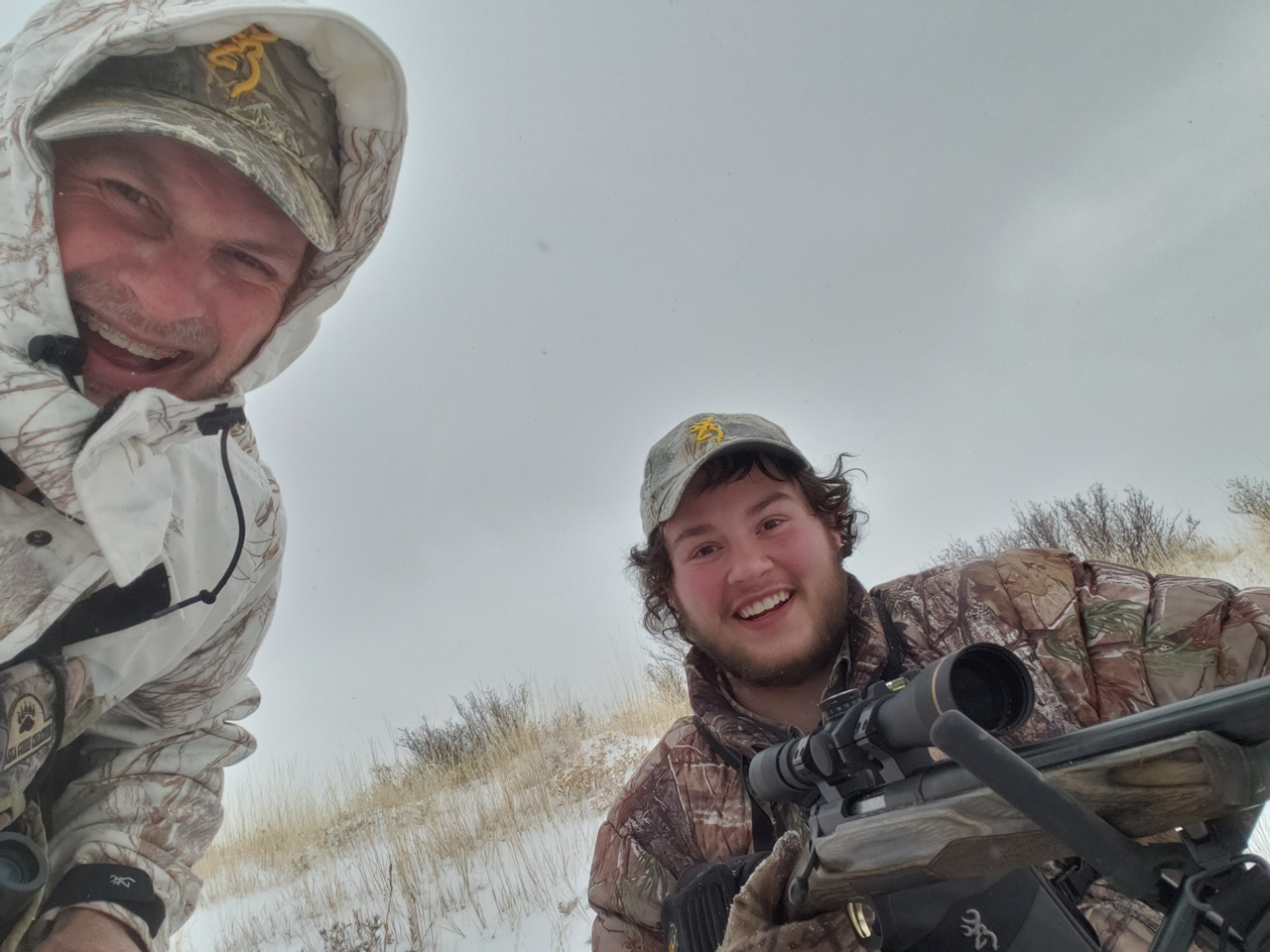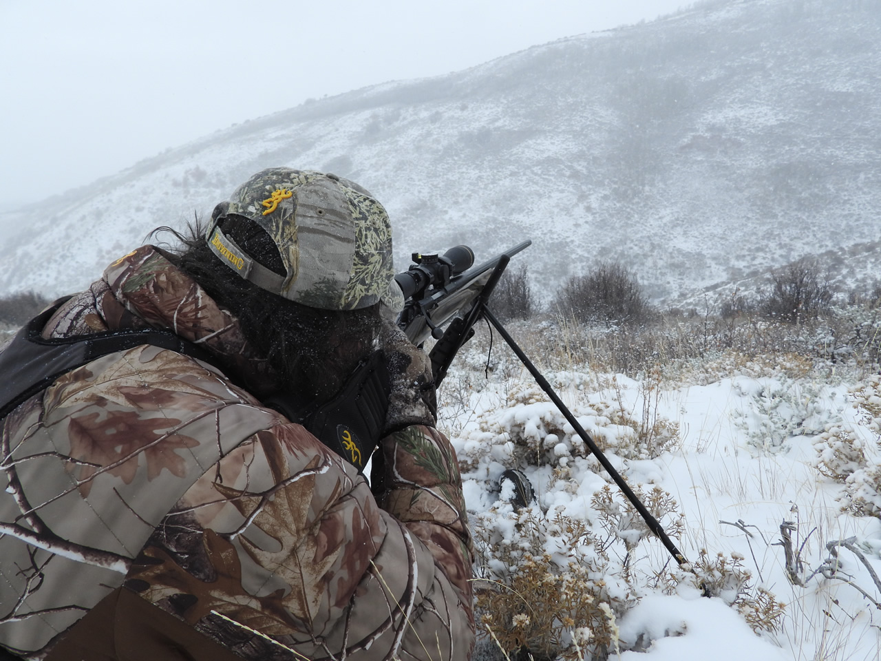 Given the time of Dallen's hunt, we were very grateful to be riding in the warm jeep. It was snowing off and on and only 7 degrees outside much of the day thanks to an extremely cold, cold front that came through.