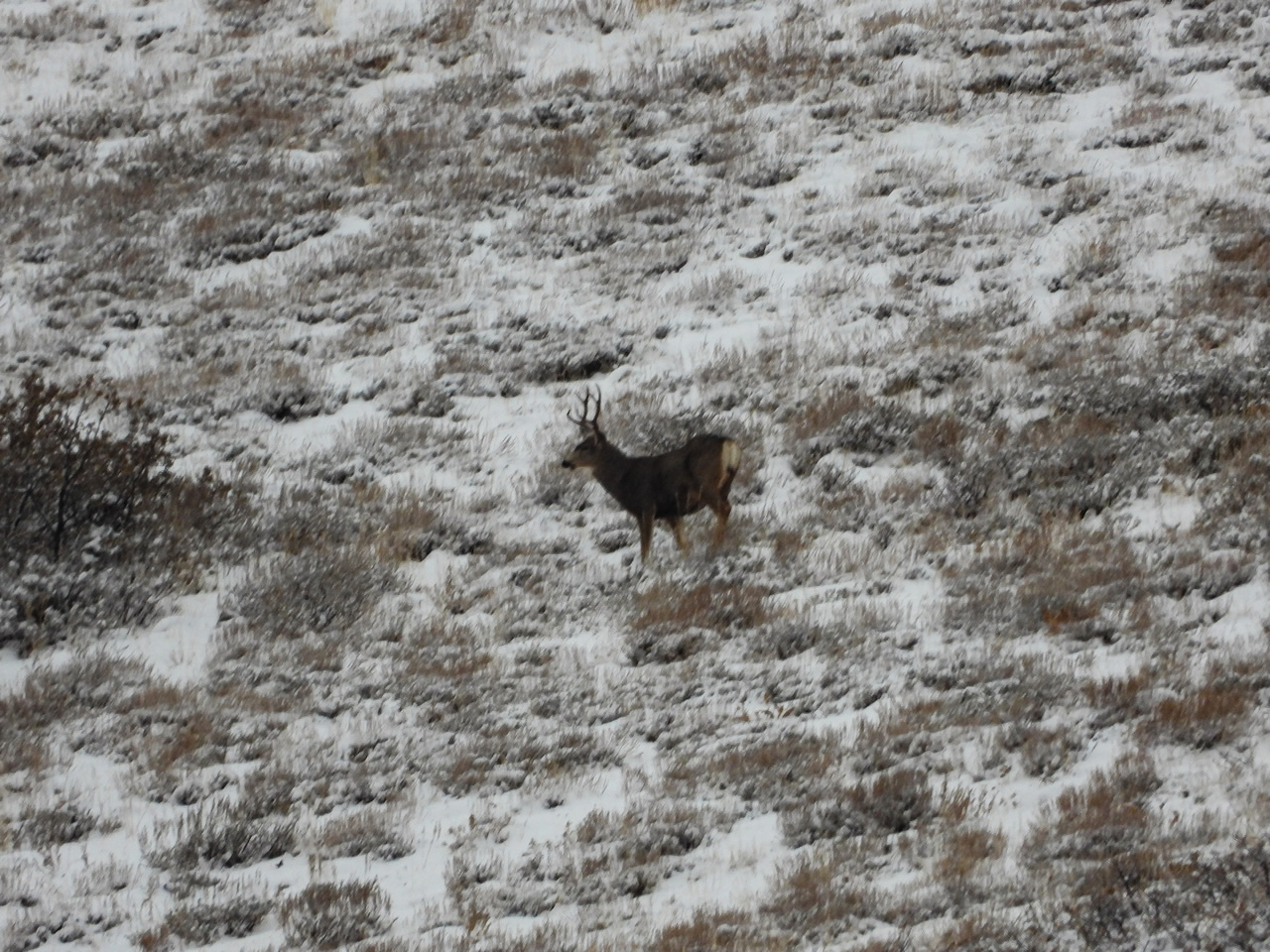 The view through my Nikon P1000 with an 125x zoom of Dallen's buck down.