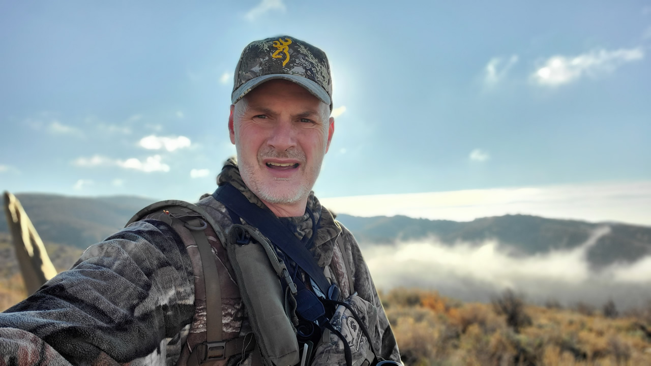 I took this selfie on the 11.3 mile hike looking for elk with my Paramount muzzleloader. This hike destroyed my knee.
