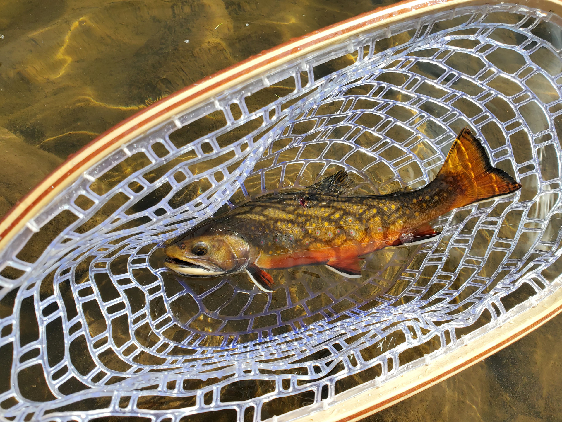 Tenkara fishing the Unita Mountains with likely my personal best Brook Trout in the net.