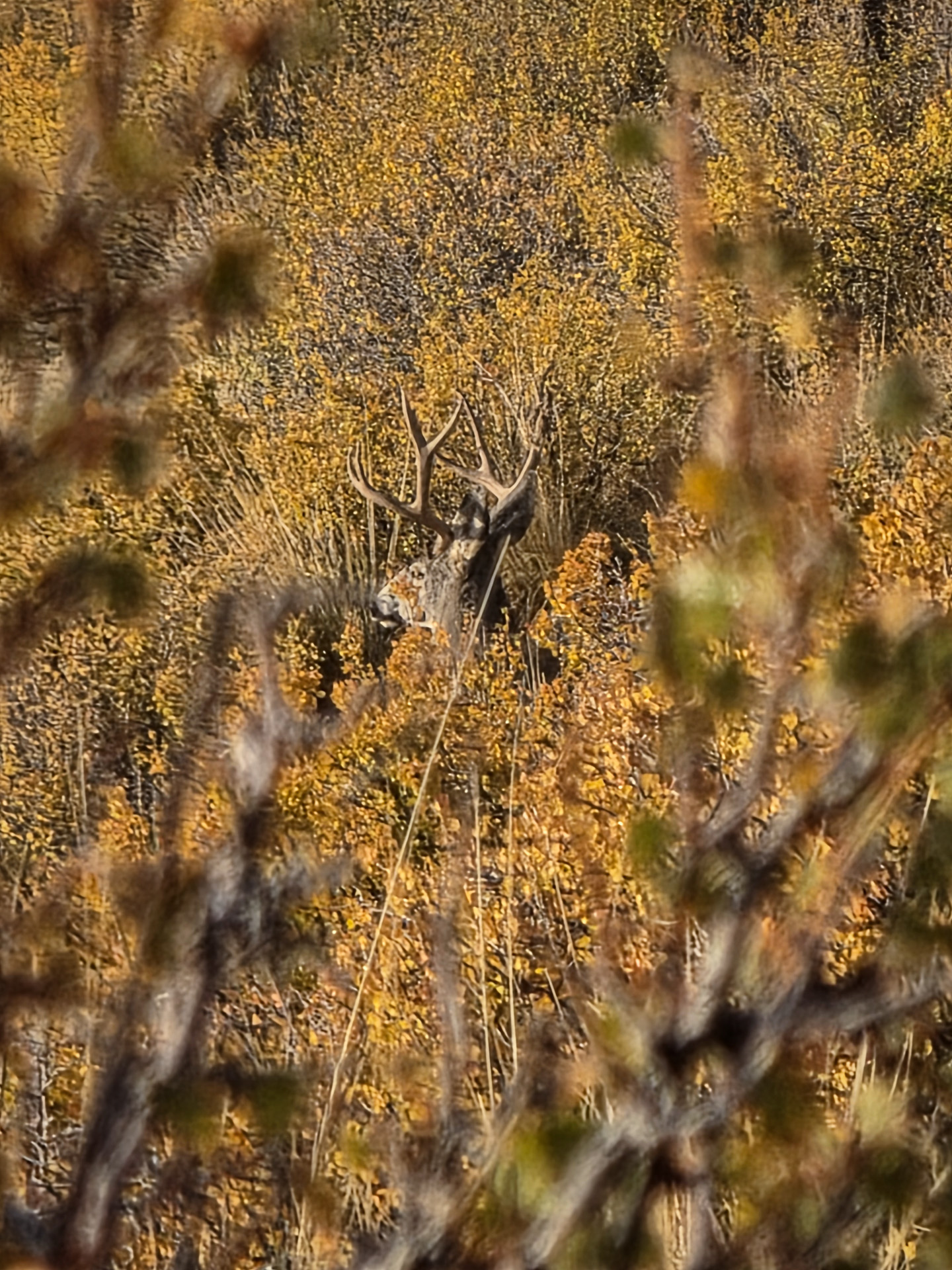 The best buck I could find on my hunt. You can see a large inline on his left side G3. The image isn't the greatest quality, as the denoise filtering in my cell phone has smoothed out the image greatly, with the buck being 325 yards away. If you watch the video at the beginning of this article, you can see this buck better in that video. If this buck wasn't taken in the rifle season, he should be around for the 2026 season. This is where he was when I bumped him (38.06133, -110.78872).