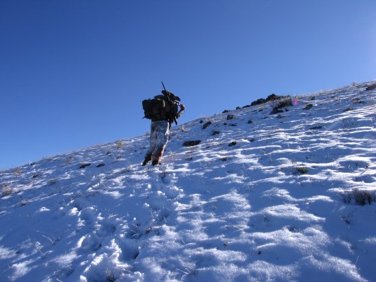 After boning him out I carried the deer out so Ryan could be light enough to explore and hunt some of the pockets on the way out. We had seen a good four-point and some smaller bucks slip up and over the one side of the basin as we slipped our way in that morning. We hoped that he could find this buck on our route out of the basin. But that just wasn't to be.