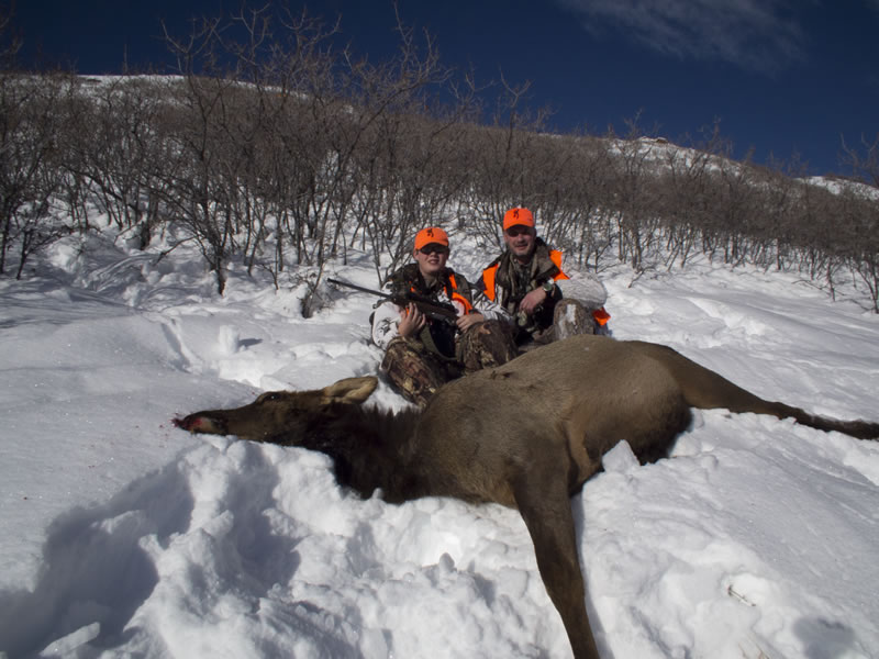 Dallen with his cow elk taken in 2010 with a Browning A-Bolt Stainless Hunter Laminate 243 WSSM using an 80g Barnes Tipped Triple Shock handload. |