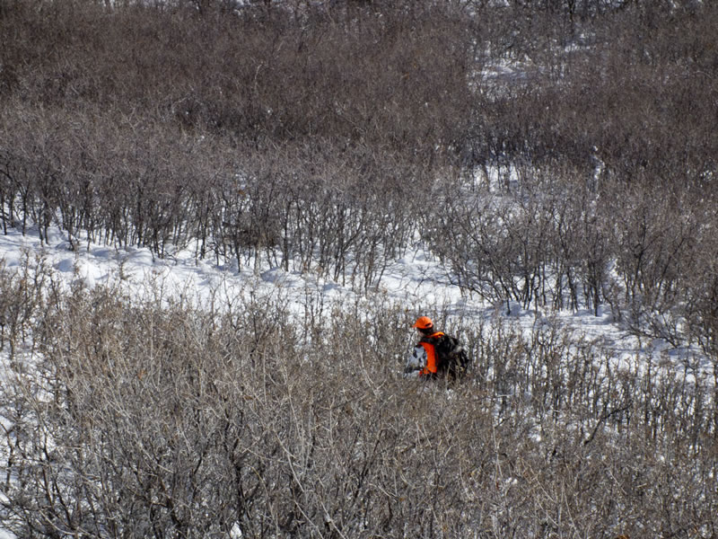 As we climbed up near the top we were able to get a good view of the area and glassed for other elk. The area was just devoid of elk that once littered the ridges pre-2008. We did find a cow and a calf at just off 800 yards away but that was it.