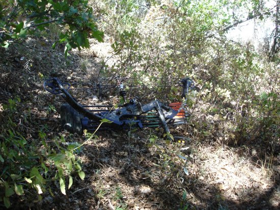 Browning Adrenaline SX bow modified with half inch longer limbs and custom strings I made to get the 32" of draw length I require.