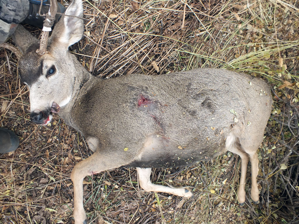 Surprisingly when we got to the downed buck, probably a full hour later, he was still alive and required a finishing shot to the neck.