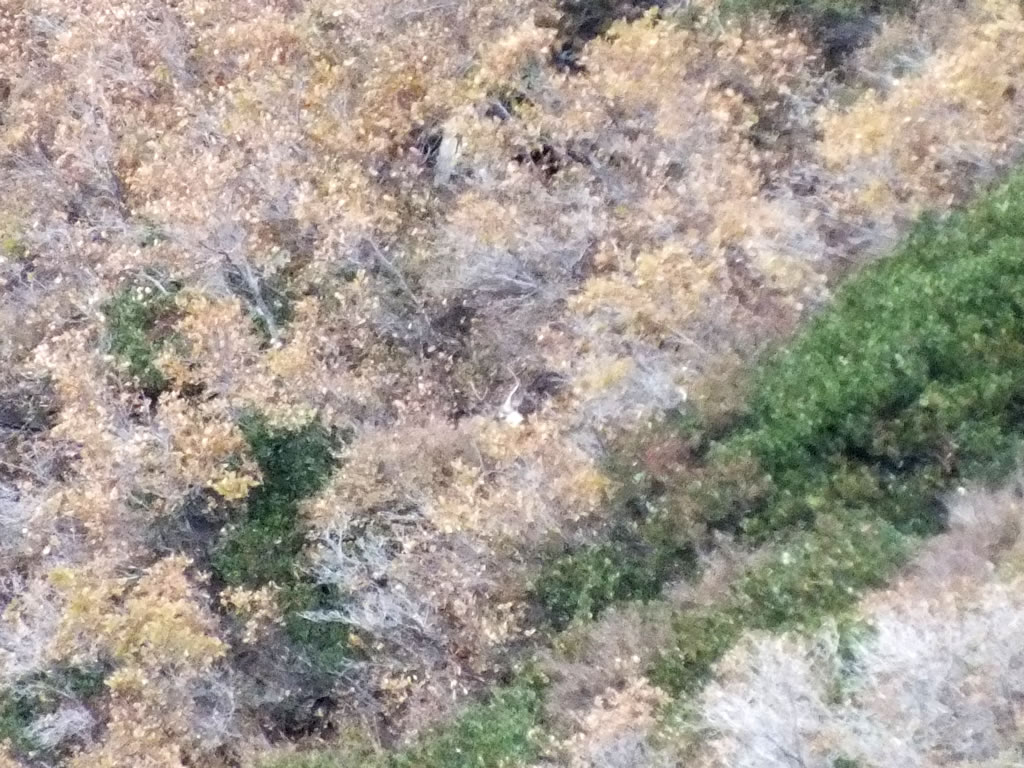 The deer weren't spooked that much as we started to work our way down through the thick chaparral and rock slides. On the way down the other hunters had finally moved around into shooting distance and a barrage of lead started to rain down into the canyon. On a couple of occasions we set up on the way down hoping that our young female hunter could get a buck, but alas it wasn't to be. She was a trooper hiking down in and out of a very steep canyon, a canyon I'm sure few ladies have ever ventured into.