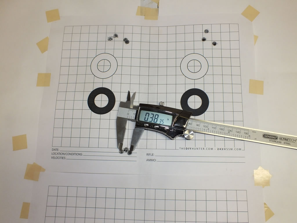 3/8 inch group with 95 Gr. Berger VLD Hunting bullets shot from my Winchester Model 1885, 243 WSSM.