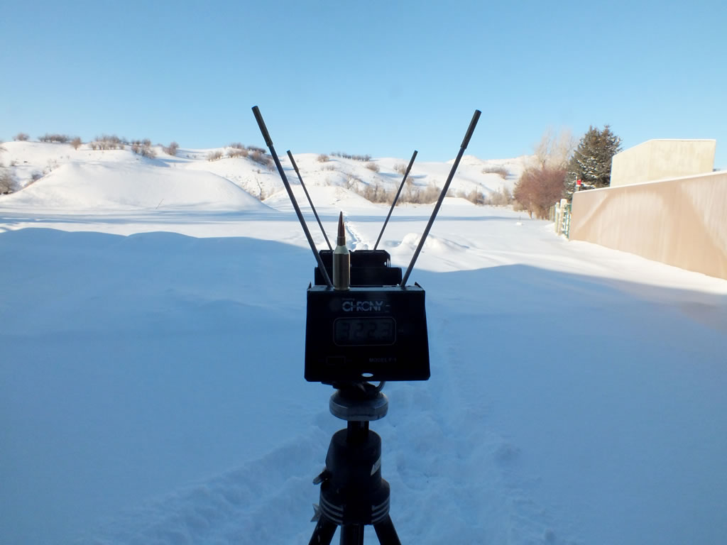 The Chrony showing 3223 FPS with 95 Gr. Berger VLD Hunting bullets and 51 Grains of MagPro powder.