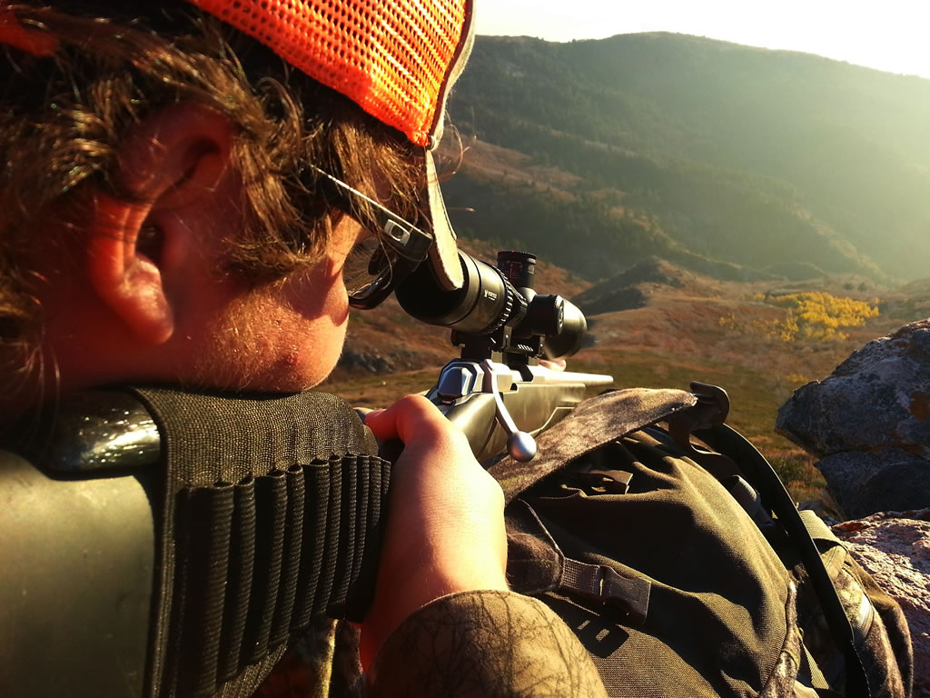 Dallen watching for mule deer from some cliffs opening day. Setup using my X-Bolt 270 WSM on his favorite shooting sticks, Stoney Point Magnum Steady Stix... except they are now Primos Magnum Pole Cat Steady Stix Magnum.