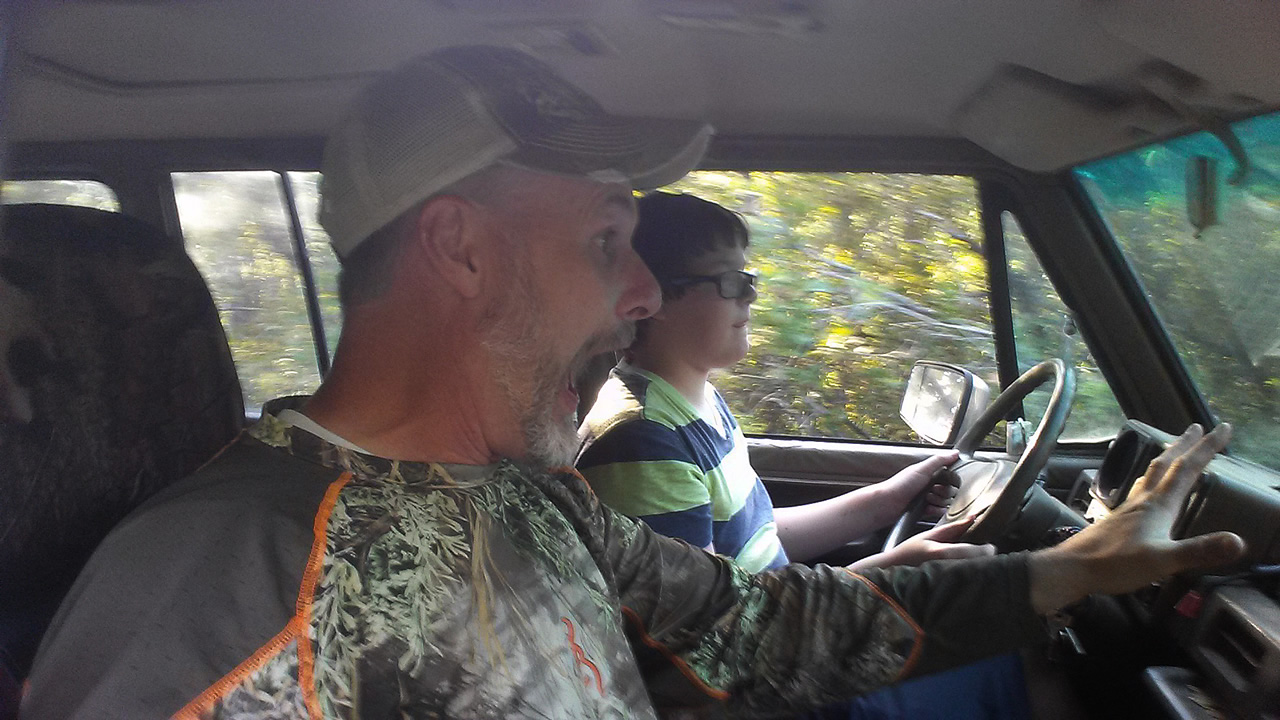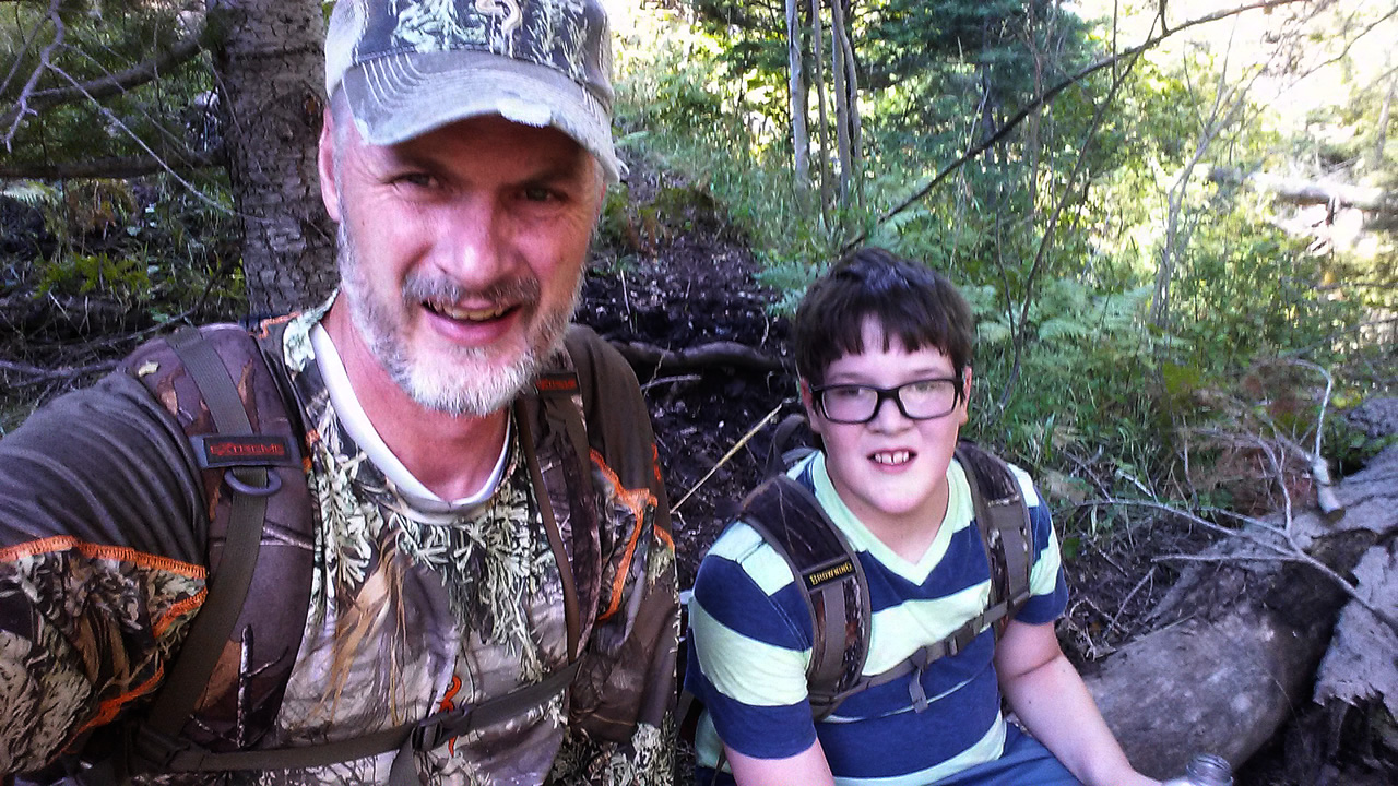 Here's a selfie of Landen and me during our hike to check the trail cameras.