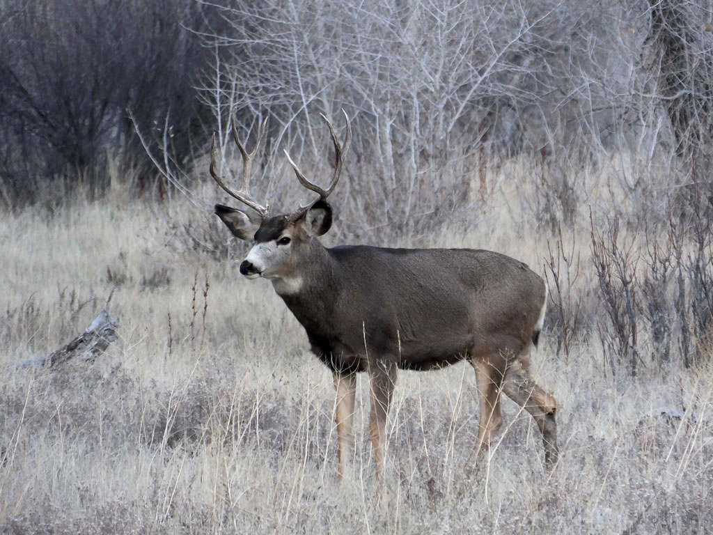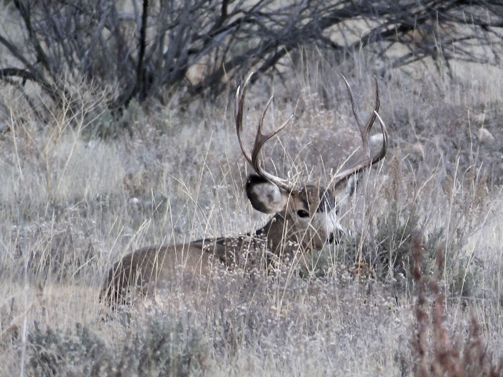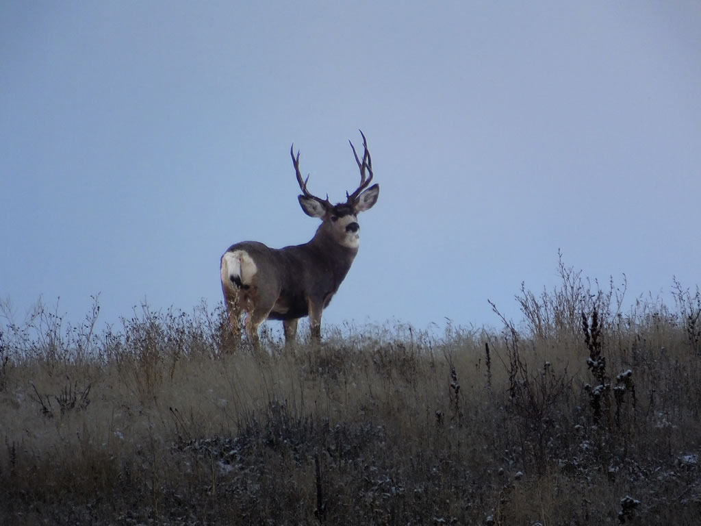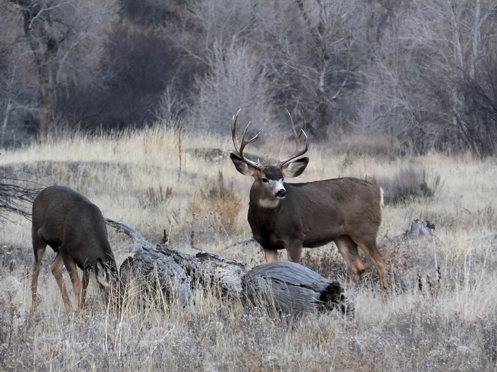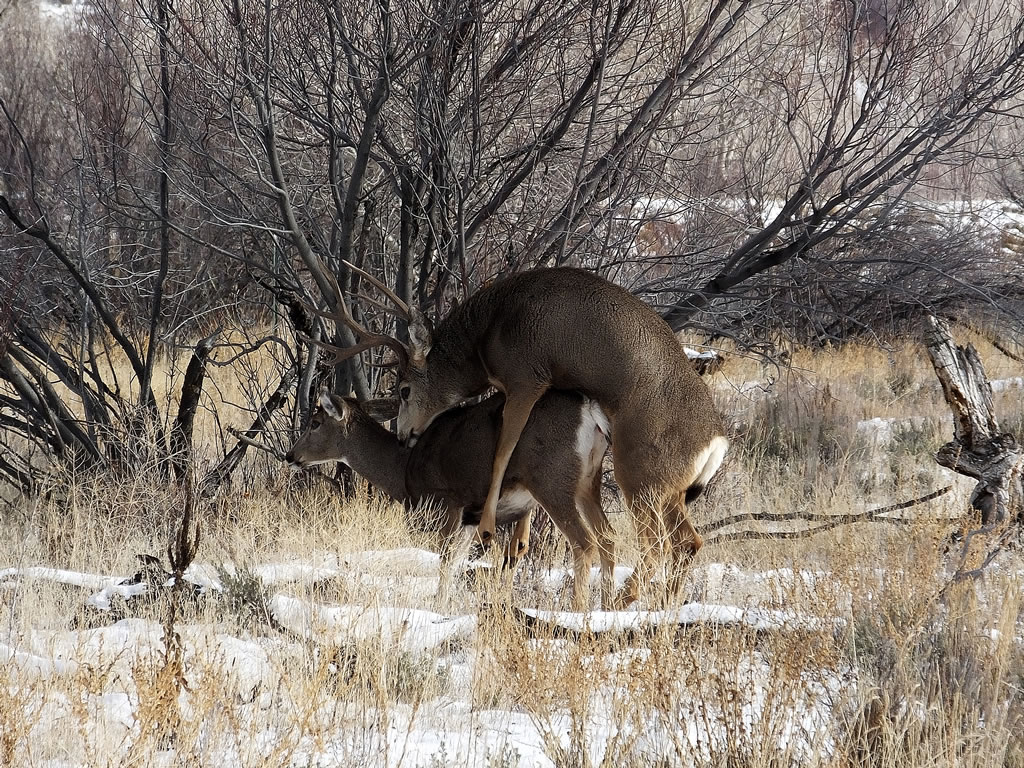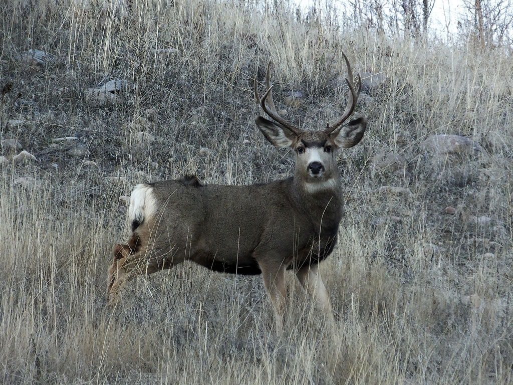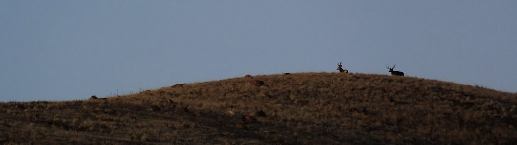 Here are some photos of mule deer and other critters I have recently taken with my new FujiFilm HS50exr digital camera. I'll add photos as I get them this winter. Most of the photos are taken at long distances with the zoom set at 42x (1000mm). All of the photos are with the camera handheld. Being a new camera for me I am learning that it behaves a little different than my old HS20exr. First, I have found that you need to make sure the focus mode switch on the left side of the camera is set to "S" for Single. Having it in Continuous "C" mode makes for getting pictures of deer that are in focus pretty darn hard. I learned the hard way with that mode... I have also found that I like the plain Auto mode over the EXR mode for getting better in-focus images. I have also stopped shooting raw photos and gone straight to just JPG. Yes, raw is better but I find it better to get a JPG than to get nothing. Shooting in raw slows down the speed with which the camera can recover before shooting another photo. I get a lot more photos of the action when shooting only JPG.