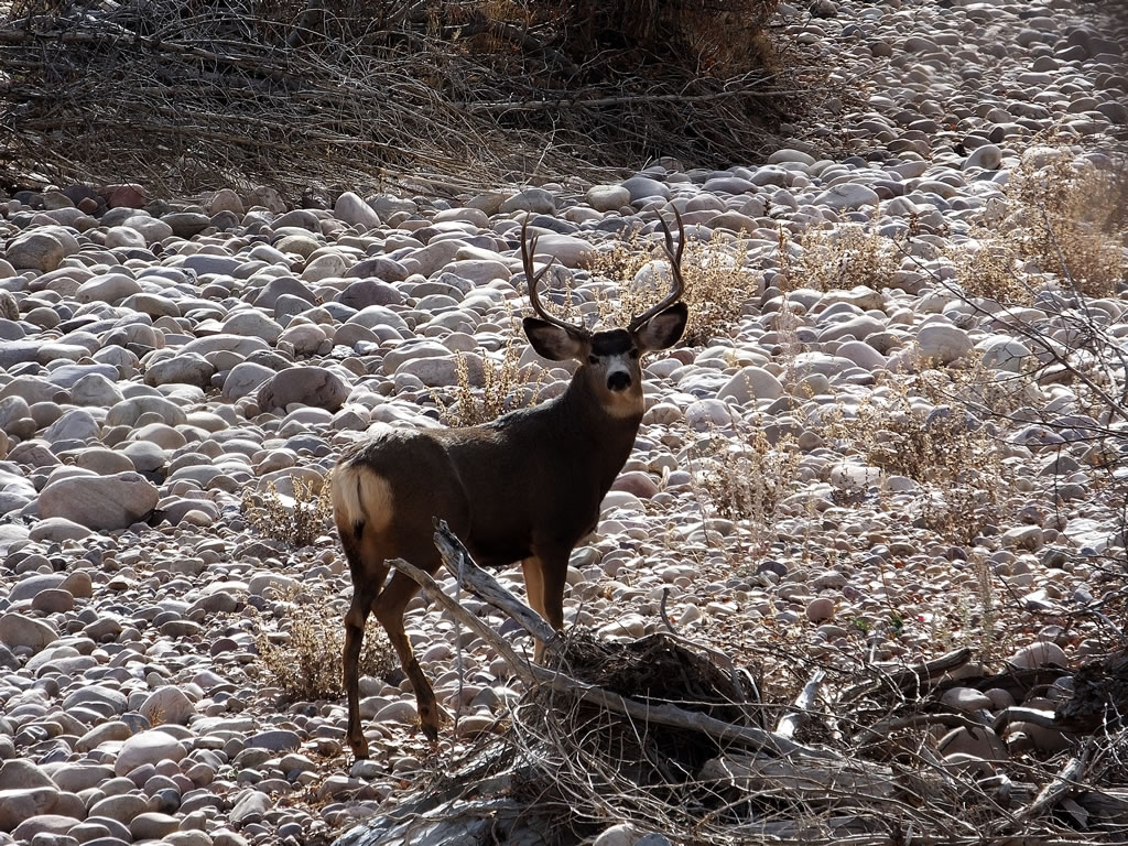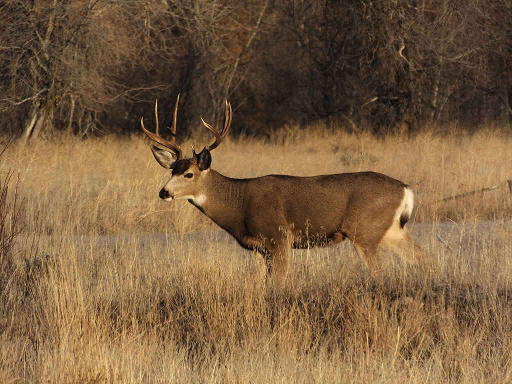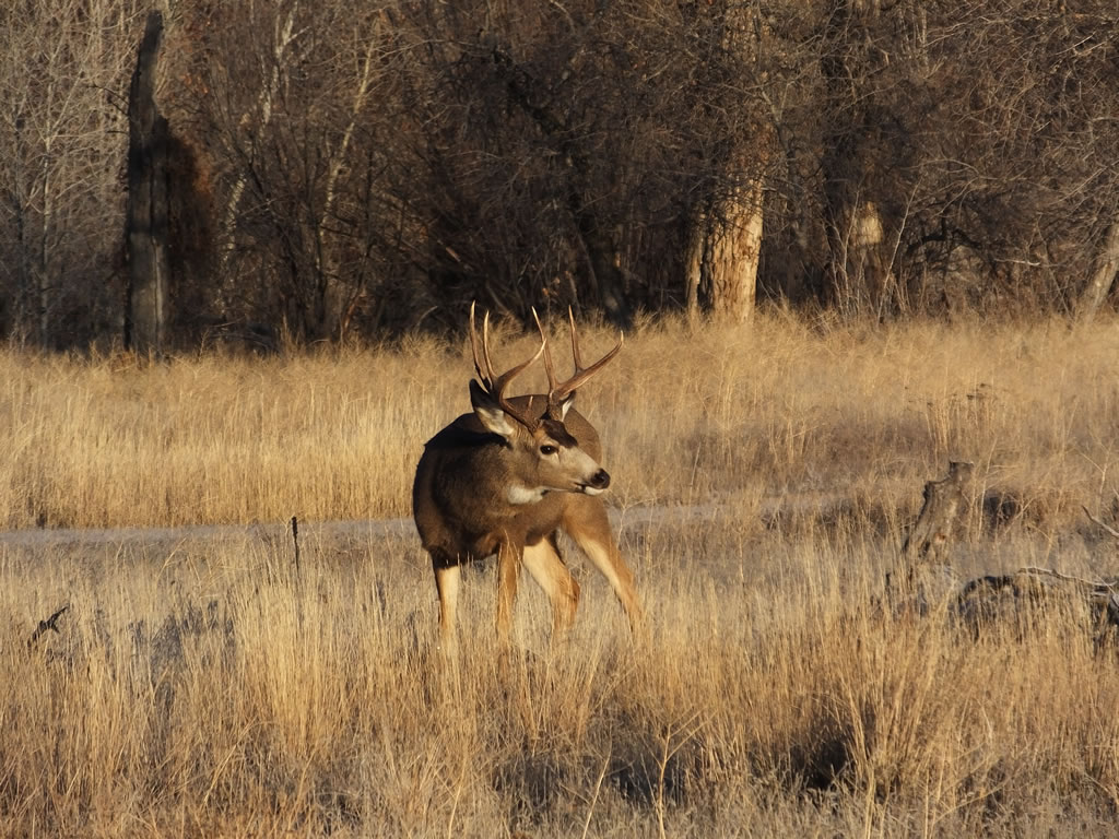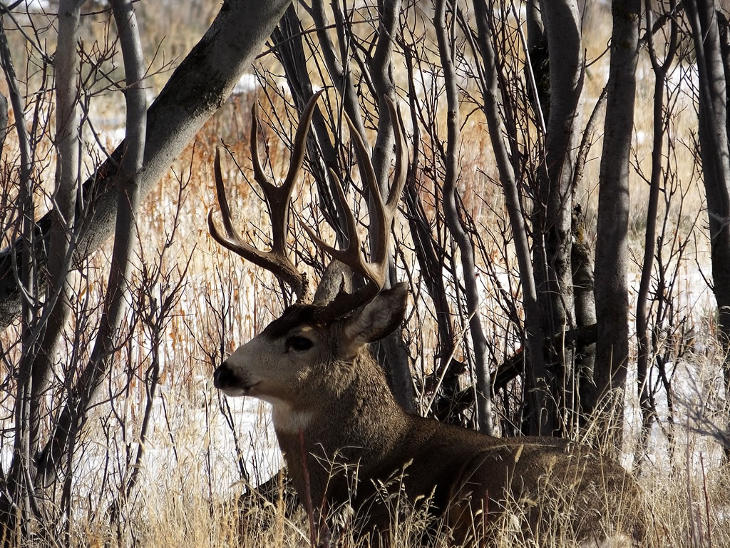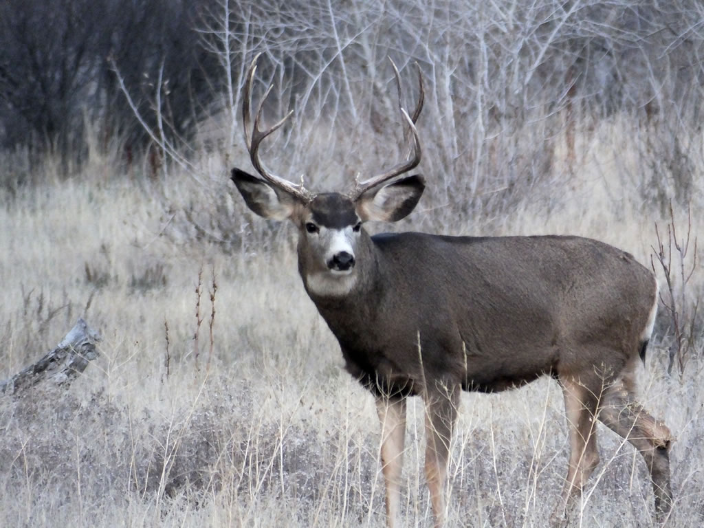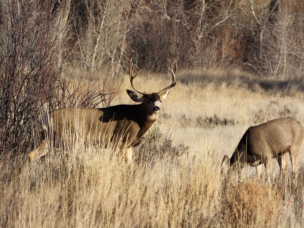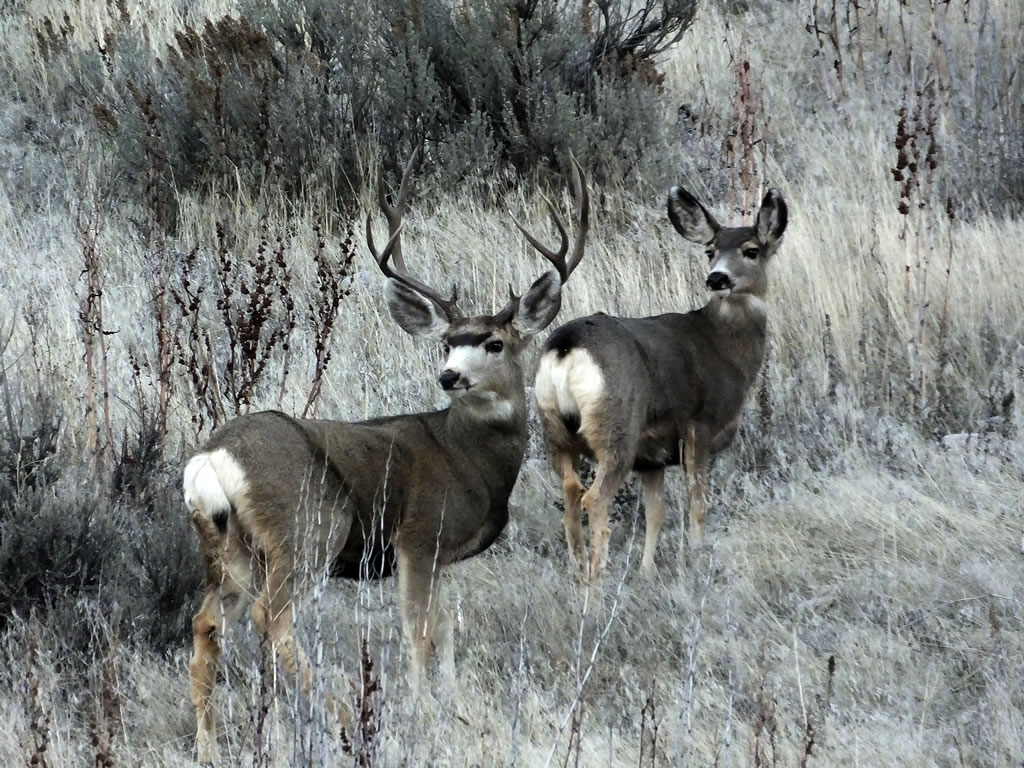 Here are some photos of mule deer and other critters I have recently taken with my new FujiFilm HS50exr digital camera. I'll add photos as I get them this winter. Most of the photos are taken at long distances with the zoom set at 42x (1000mm). All of the photos are with the camera handheld. Being a new camera for me I am learning that it behaves a little different than my old HS20exr. First, I have found that you need to make sure the focus mode switch on the left side of the camera is set to "S" for Single. Having it in Continuous "C" mode makes for getting pictures of deer that are in focus pretty darn hard. I learned the hard way with that mode... I have also found that I like the plain Auto mode over the EXR mode for getting better in-focus images. I have also stopped shooting raw photos and gone straight to just JPG. Yes, raw is better but I find it better to get a JPG than to get nothing. Shooting in raw slows down the speed with which the camera can recover before shooting another photo. I get a lot more photos of the action when shooting only JPG.