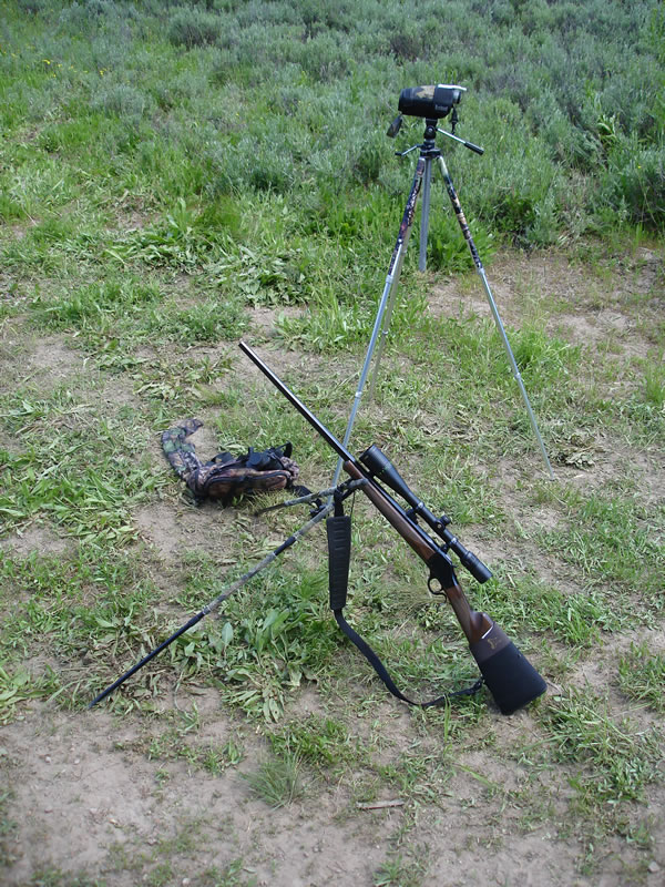 I was shooting my 243 WSSM Winchester Model 1885 with 55g Ballistic Tip factory load bullets. These bullets have a muzzle velocity of 4240 fps from this rifle. I was shooting from a sitting position using my Stoney Point Steady Stix with a tripod and my digiscope to the right of me.