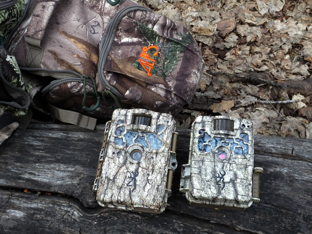 Browning Recon Force XR next to the smaller Strike Force trail camera.