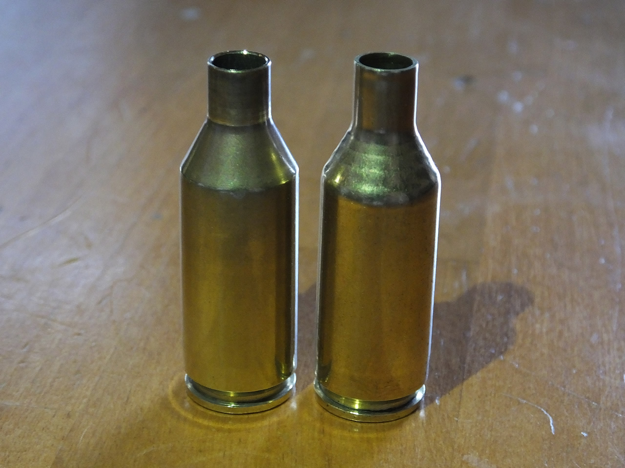 243 WSSM Brass - The piece on the left I have reloaded numerous times. The piece on the right is a reformed piece of 325 WSM brass from Hill Billy Brass. It has been fired in my rifle once and has been prepped, ready to be loaded up for use.