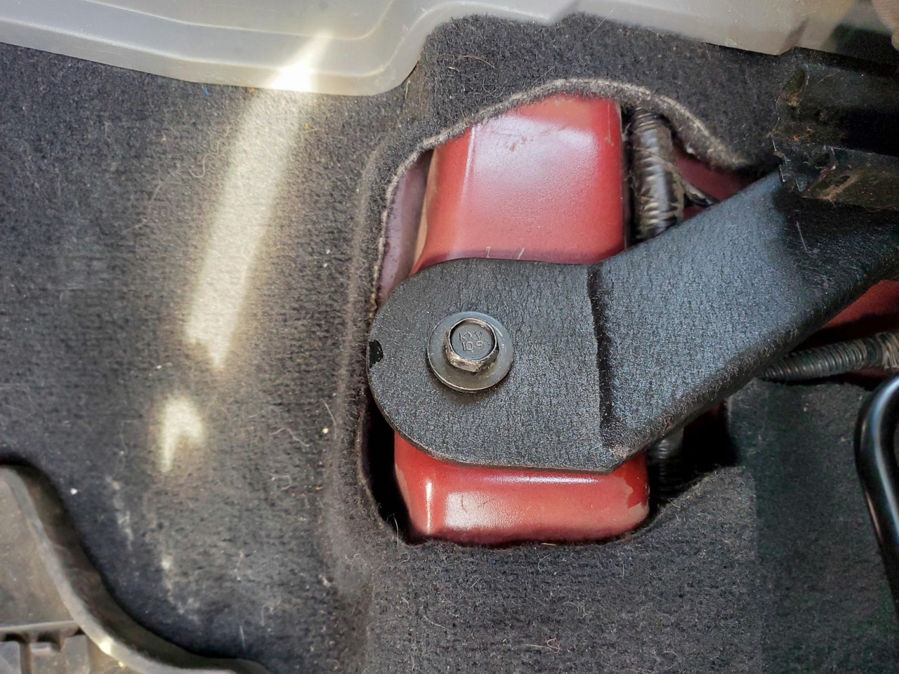 The process of unbolting and bolting in the new Misch bracket was fairly easy and quick. The only thing that I had to do was place large washers under the front of the bracket and the floor. The side closest to the console would not bolt flush to the floorboard because the floorboard starts to curve upward to the console so I added the thick large washer to get the bracket to mount flush and not just dig into the console side.